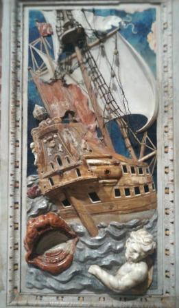 Nelle pareti della navata, posti negli alti basamenti delle paraste che separano le cappelle, si trovano preziosi riquadri in marmi mischi, bassorilievi e altorilievi. Su tutti spicca il primo che si incontra a destra per chi entra, che raffigura la scena di uno dei più importanti episodi del vecchio testamento, ovvero, “Giona e la balena” dello scultore palermitano Giovan Battista Ragusa; un piccolo capolavoro. Al centro della scena troviamo raffigurato un veliero, realizzato con marmi particolarmente pregiati e pietre dure. in basso a destra il mostro marino, con la bocca spalancata; a sinistra Giona tra le onde che tenta disperatamente di salvarsi.