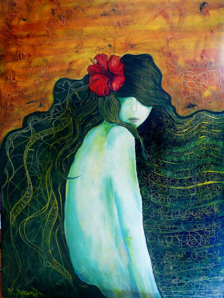 Così le avvenenti forme si incontrano fugacemente con lo spettatore, che si trova nell’impossibilità di conoscere davvero i soggetti dipinti ed è costretto a cercare la profondità in altri aspetti del dipinto, quelli meno evidenti. Ci si ritrova dunque rapiti nelle armoniose pennellate che ricreano la sinuosità di un corpo, oppure persi nei lunghi grovigli di capelli, contorti come flussi di pensiero o raccolti in acconciature esotiche, notando nuovi particolari ogni volta che si volge lo sguardo ad un angolo che credevamo di conoscere a memoria.