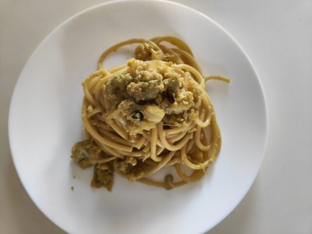 • The mixing (“arriminare”): It is important to mix the ingredients well during cooking, lightly crushing the cauliflower florets to create a sort of ragù. This is the action that gives the dish its name.